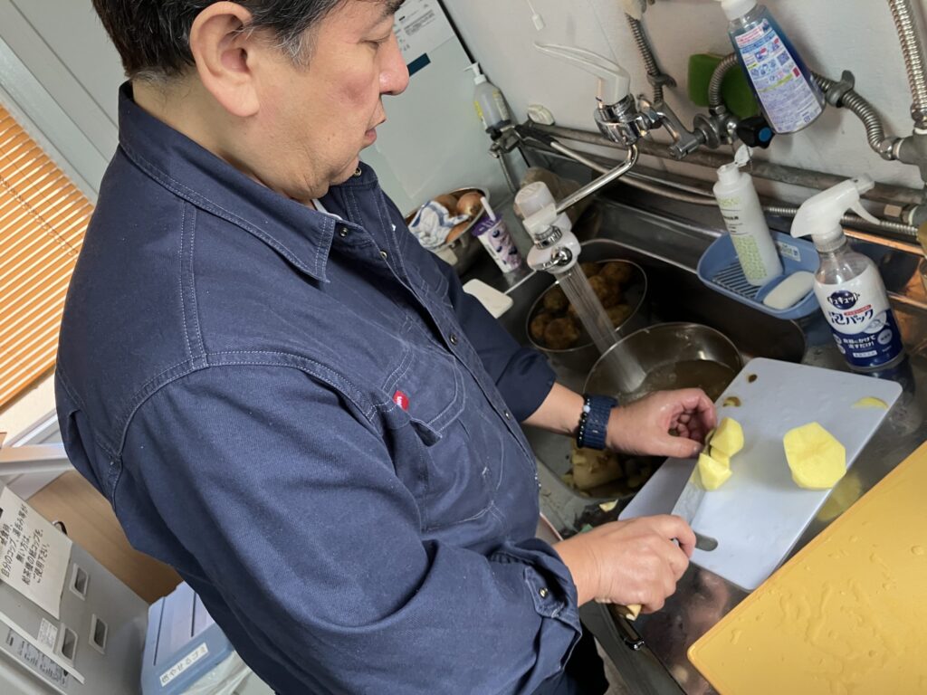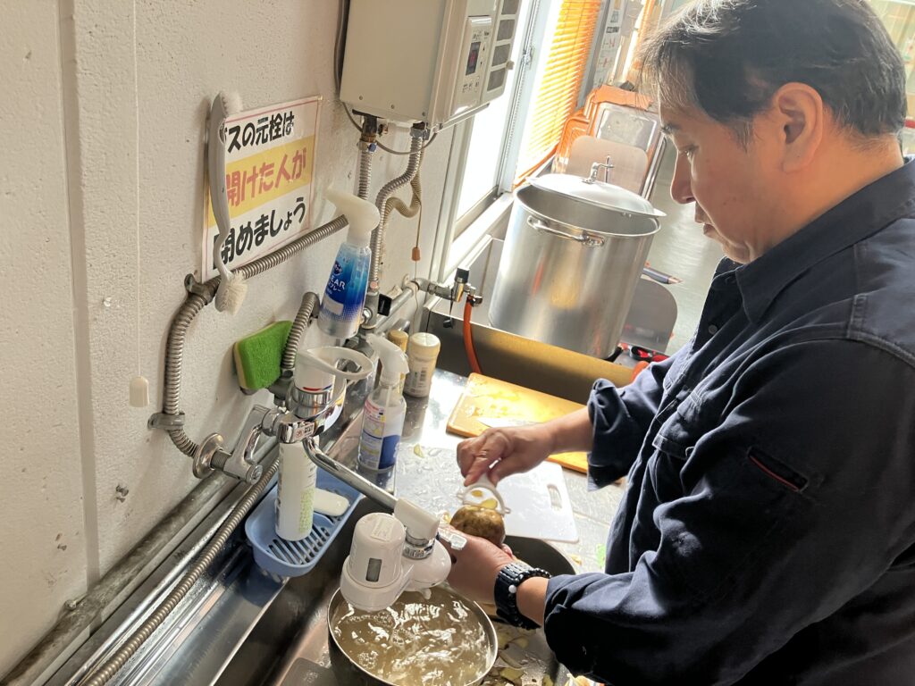 社員からの要望で大量に入れたジャガイモが煮崩れして、ちょっとがっかりな社長(笑)