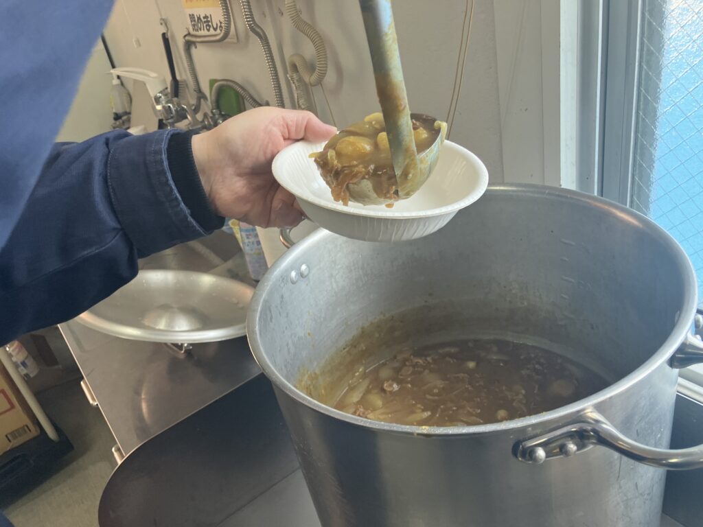 社長カレー 第33弾 ~263~ 投稿日: 2026年3月5日 投稿者: 山形朝日 2月21日 土曜出勤の日のお楽しみといえば、やっぱり“社長カレー”。 今回でなんと33回目になりました! 朝から社長がじゃがいもや玉ねぎをせっせとむき、大鍋でぐつぐつ煮込む姿はもはや定番となりました。 できあがったカレーは、野菜もお肉もたっぷり入った大満足の一皿。 今月も美味しいカレーをありがとうございました。